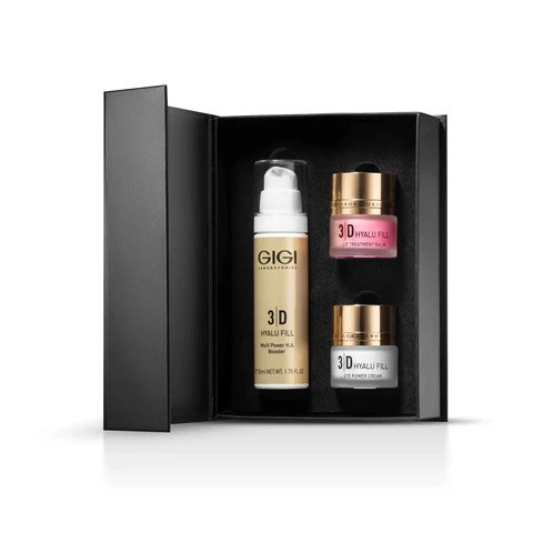 Koosneb: 3D HYALU FILL seerumist 50ml, silmakreemist 20ml ja huulepalsamist 20ml.